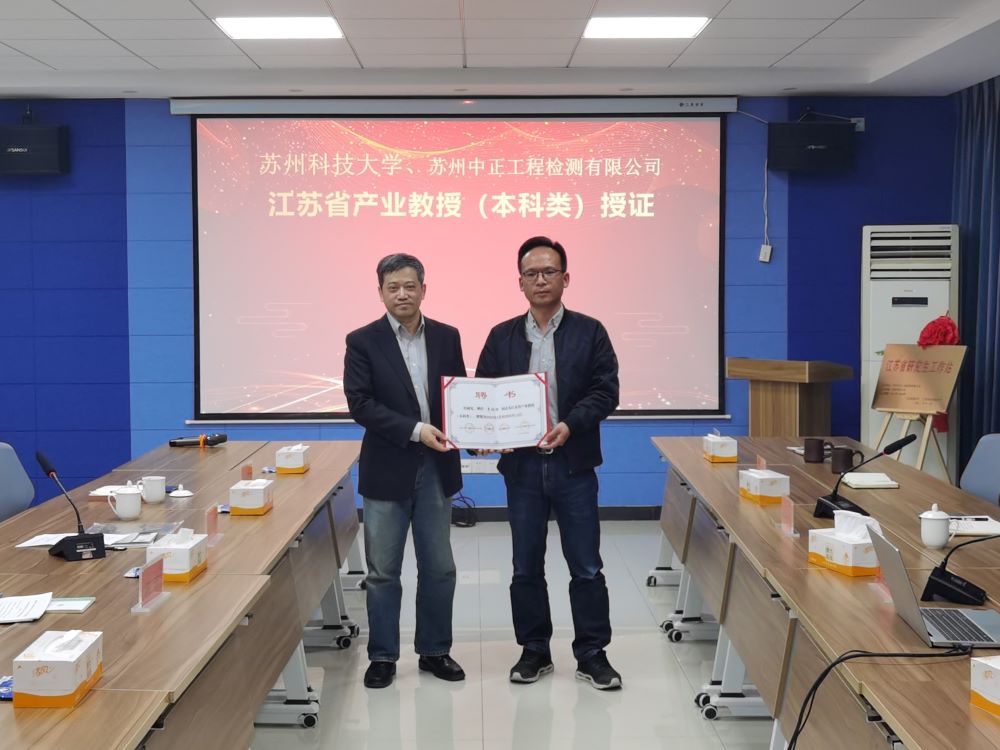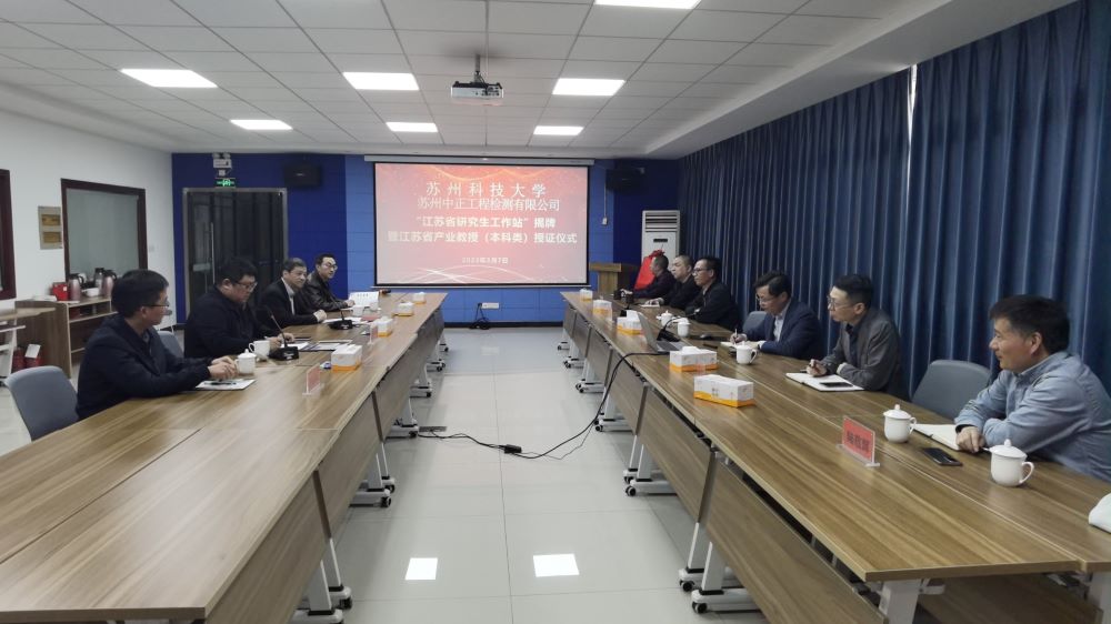 作者:蔡新江 图片作者:蔡新江 发布日期:2023-03-12 浏览:次近日,我校与苏州中正工程检测有限公司举行“江苏省研究生工作站”揭牌暨“江苏省产业教授”授证仪式。我校研究生院副院长陈丰、老王论坛 副院长范存新、老王论坛 建工系主任蔡新江等出席了活动。