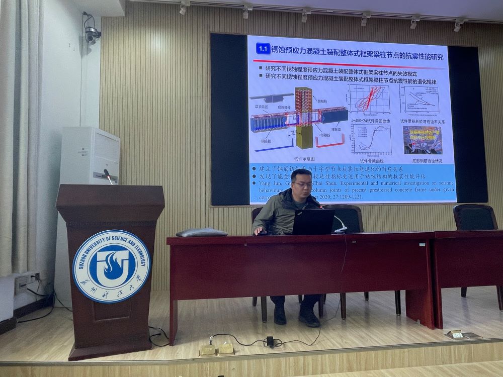 随后,建筑工程系青年教师刘聪和杨俊分别以“模块化可拆卸结构研究历程”和“混凝土结构耐久性能评估及寿命预测研究”为题,向广大师生做了精彩且充实的汇报。汇报结束后,与会师生结合上述汇报内容,与两位老师就感兴趣的议题开展了广泛的交流和热情的讨论,其中,黎明、凌志彬、夏志远及翟慕赛四位老师结合自身研究情况,就部分关键问题及技术与两位老师又做了更为深入的探讨。
