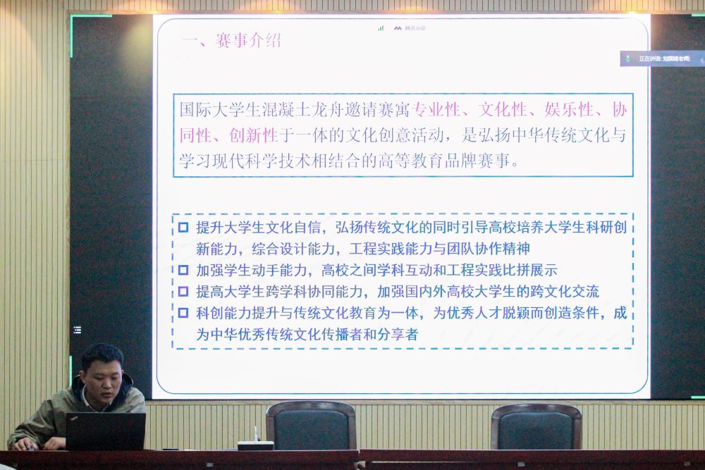 工程管理系吴芳老师、工程管理系祝连波老师、工程力学系沈峰老师、建筑工程系刘国建老师及建筑工程系夏志远老师分别以“全国大学生房地产策划大赛”“全国高校BIM毕业设计创新大赛”“全国周培源大学生力学竞赛”“国际大学生混凝土龙舟赛”及“全国大学生结构设计大赛”为宣讲主题,从赛事背景、赛事安排、赛事特点、我院成果、故事分享等多个方面向广大学子介绍各项赛事的基本情况,在做好普及、宣讲工作的基础上,鼓励大学生在大学期间积极投身学科竞赛,努力培养创新实践能力。