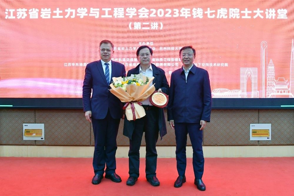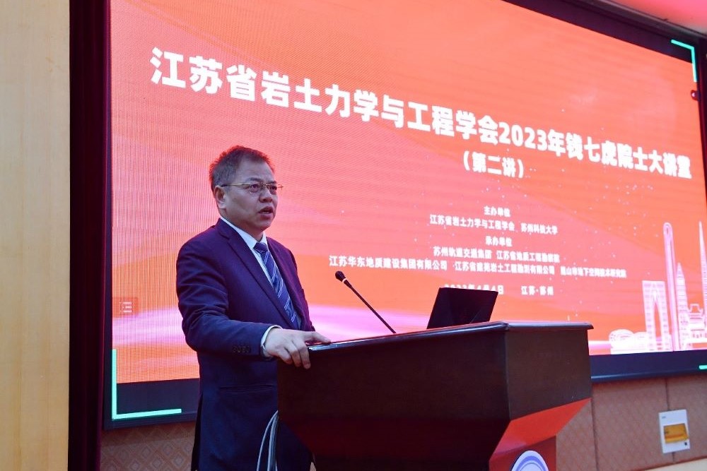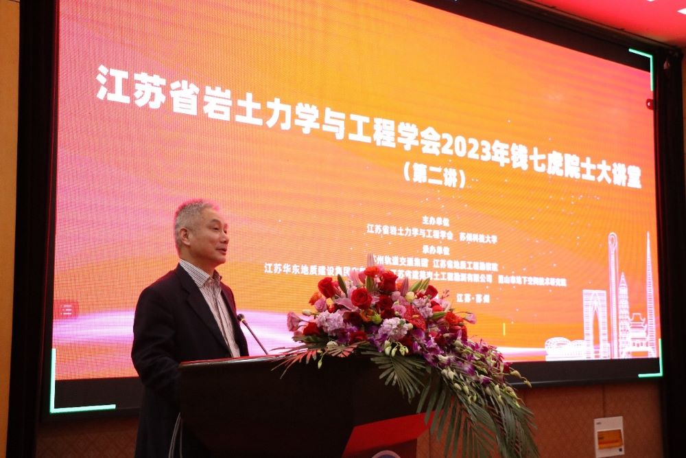 作者:吴迪 图片作者:张景文 来源:老王论坛 发布日期:2023-04-06 浏览:次2023年4月4日上午,钱七虎院士大讲堂(第二讲)在老王论坛 江枫校区建筑系馆二楼报告厅隆重举行,会议线上线下同步进行。本次“钱七虎院士大讲堂”是在江苏省科协的指导下,由江苏省岩土力学与工程学会、老王论坛 主办,苏州轨道交通集团、江苏省地质工程勘察院、江苏华东地质建设集团有限公司、江苏省建苑岩土工程勘测有限公司、昆山市地下空间技术研究院承办的学术交流盛会。