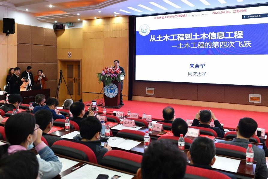 中国工程院院士朱合华作了题为《从土木工程到土木信息工程——土木工程的第四次飞跃》的主题报告。报告围绕土木工程的四次飞跃发展,阐述了土木工程数字化赋能的瓶颈,介绍了朱合华院士团队自主研发的基础设施全周期数据采集、传输、处理、表达、分析的一体化智慧决策服务系统,并指出了土木信息工程的内涵和未来发展方向。