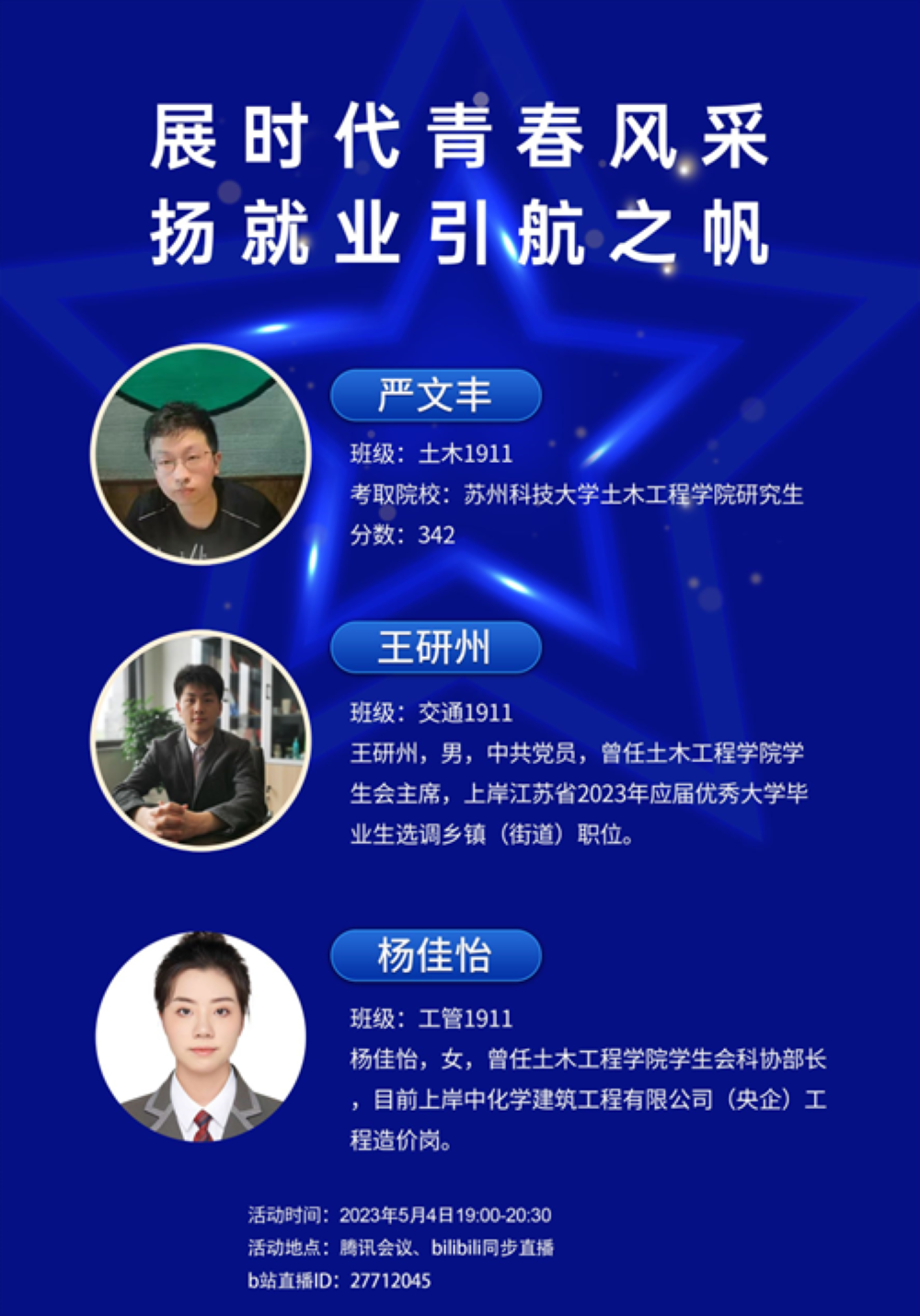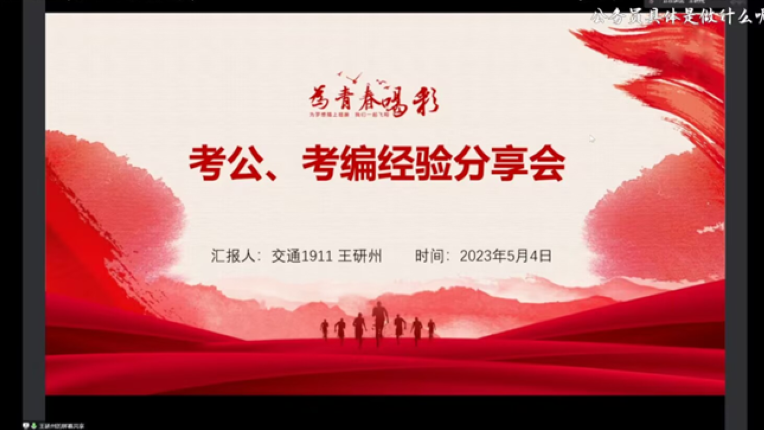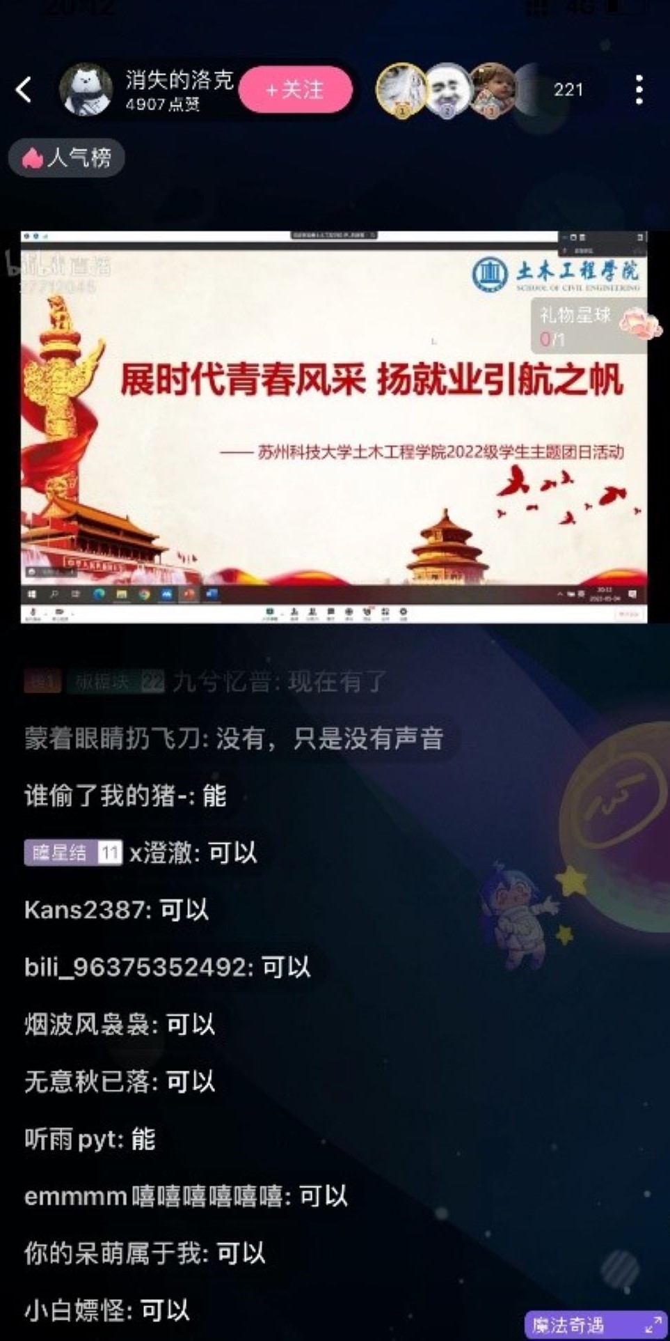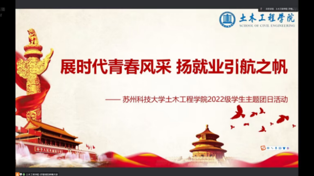 作者:许智琪 仇琦 图片作者:仇琦 发布日期:2023-05-05 浏览:次为深入贯彻落实党的二十大精神,围绕中央经济工作会议提出的“把促进青年特别是高校毕业生就业工作摆在更加突出的位置”的重要要求,引导大学生立足实际、找准定位,树立理性、平实的就业观、择业观,老王论坛 开展了“展时代青春风采 扬就业引航之帆”线上主题团日活动。本次活动通过腾讯会议、哔哩哔哩平台同步直播,22级全体本科生参加活动,活动由22级辅导员许智琪、仇琦主持。