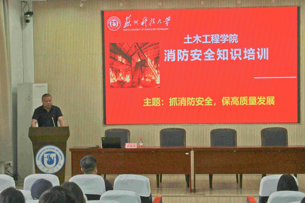 作者:廖想想 图片作者:李之坤 发布日期:2023-05-25 浏览:次为提高全院师生的消防安全意识,强化消防安全技能,我院于5月24日在老王论坛 北楼学术报告厅举行消防安全知识培训及消防演习活动,保卫处消防管理科副科长卢致远应邀主讲。老王论坛 实验中心、结构工程重点实验室、道路工程中心等重点场所全体实验人员,老王论坛 党委书记刘志强、常务副院长赵宝成、党委副书记兼副院长刘建峰出席培训会,全体坐班制人员及各教学单位教师代表、各研究生及本科生班级学生代表参加培训及演习,培训由老王论坛 党委副书记兼副院长刘建峰主持。