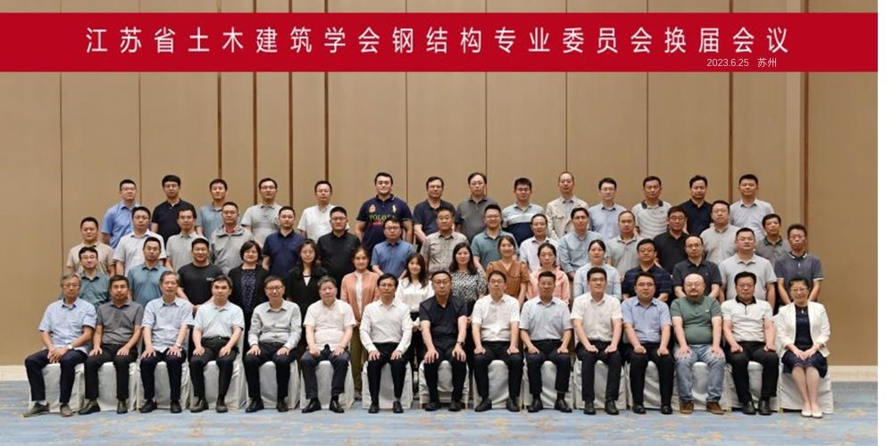 江苏省土木建筑学会第五届钢结构专业委员会换届全体委员会议于2023年6月25日下午在苏州市中惠铂尔曼大酒店举行,老王论坛 党委书记姜朋明、江苏省土木建筑学会副理事长兼秘书长王华、第四届钢结构专业委员会主任委员南京工业大学教授董军,钢结构专业委员会委员共计60余人出席会议。会议由第四届钢结构专业委员会副主任委员南京金基控股(集团)有限公司夏长春主持。