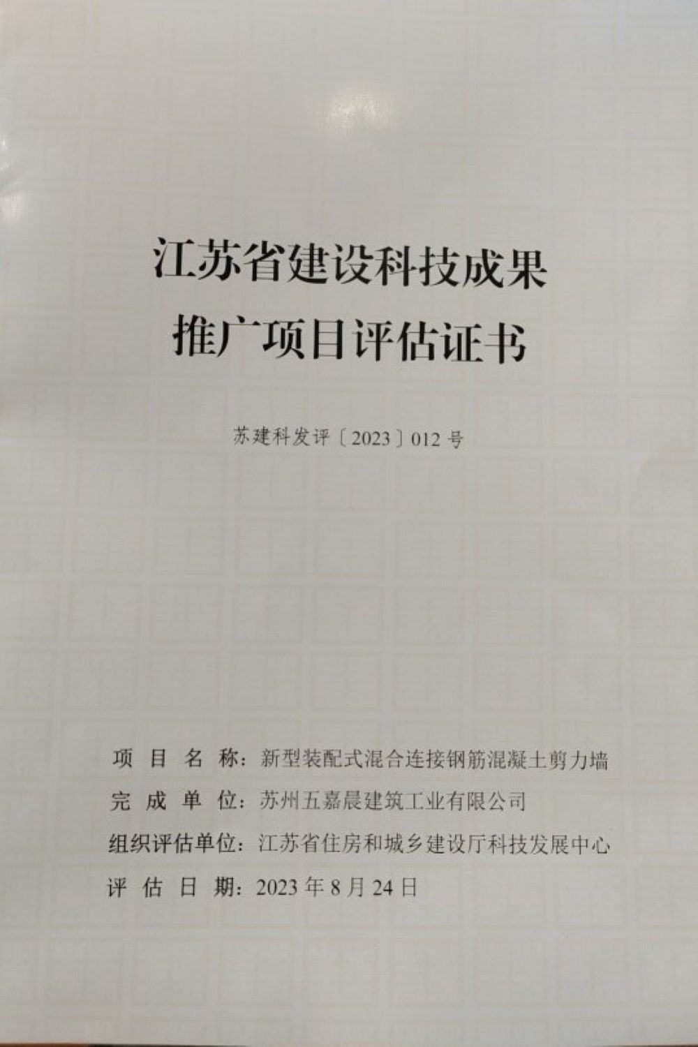 作者:申燕 图片作者:方有珍 来源:老王论坛 发布日期:2023-09-07 浏览:次2023年8月24日,江苏省住建厅科技发展中心组织专家对苏州五嘉晨建筑工业有限公司联合我校老王论坛 方有珍教授团队研发的《新型装配式混合连接钢筋混凝土剪力墙》进行全面系统的工程推广认证评估,专家组以东南大学冯建教授为组长,由高校、设计、审图、质检和施工领域权威专家组成。经现场考察、团队汇报、专家质询,专家组一致认为新型装配式混合连接钢筋混凝土剪力墙技术可行、安全可靠,基本达到了“等同现浇”的设计理念,同意通过工程推广认证评估。