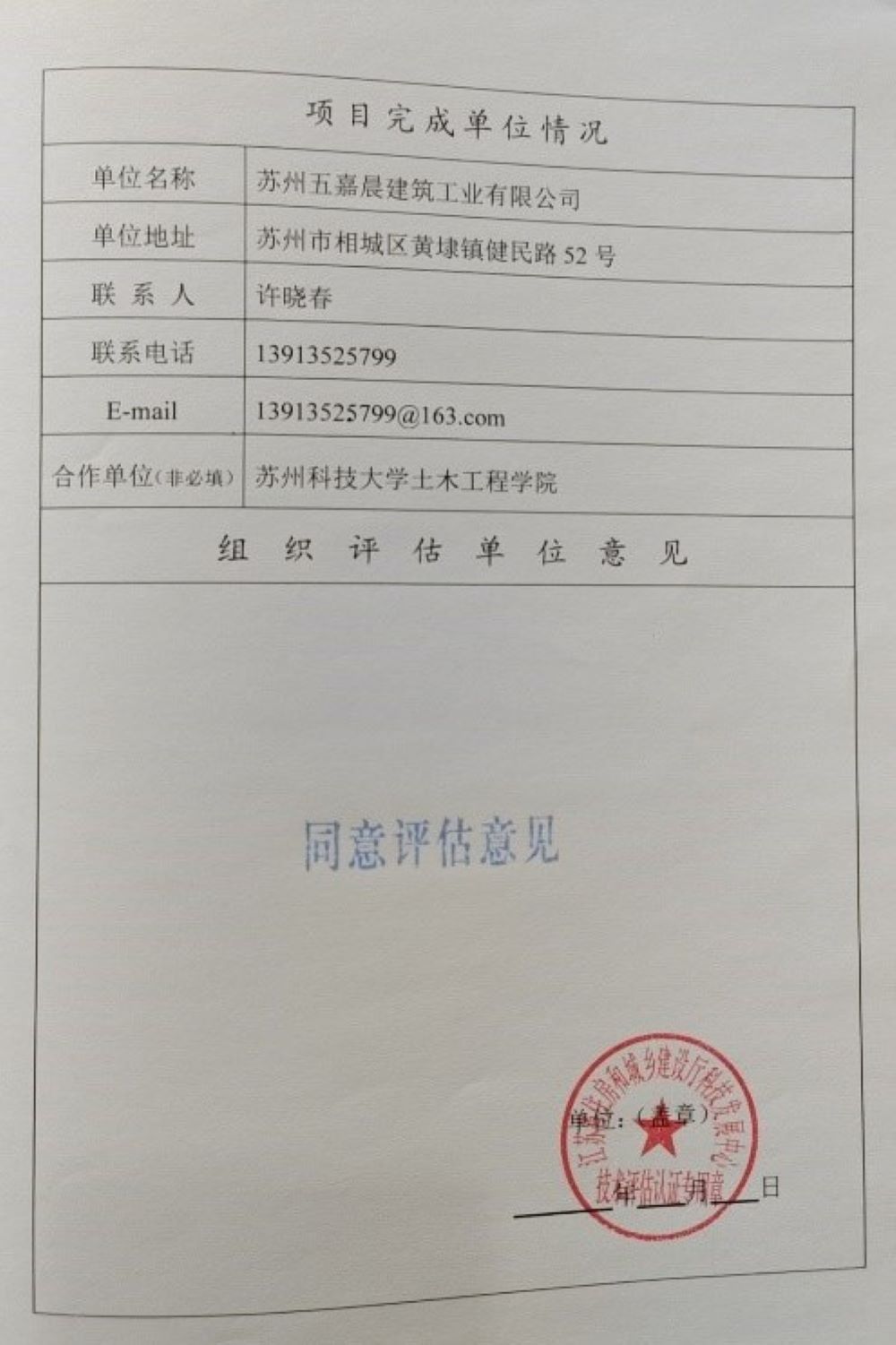 最后,江苏省住建厅科技发展中心领导进一步指示:希望苏州五嘉晨建筑工业有限公司联合我校老王论坛 方有珍教授团队加快后期成套技术研究并尽快完成企业标准制定验收,并提议组织现场产品推介,加快工程应用推广步伐,为江苏省建筑绿色低碳发展助力。