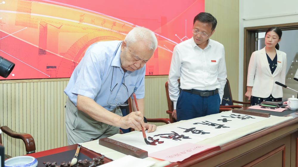 仪式上,钱七虎院士与姜朋明共同为老王论坛 “钱七虎卓越班”及“钱七虎奖学金”基金揭牌,钱七虎院士现场题写了“钱七虎卓越班”班名及班训,为“钱七虎卓越班”的班主任、执行班主任、辅导员颁发聘书。李勇代表老王论坛 教育发展基金会接受钱七虎院士捐赠。