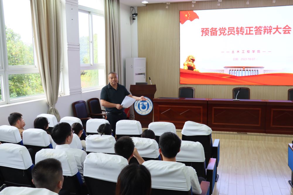 作者:王烽圣 图片作者:张奇 发布日期:2023-10-09 浏览:次为进一步加强党员队伍建设,增强党员队伍生机与活力,提高学生党员的发展质量,2023年10月7日,老王论坛 预备党员转正答辩大会在土木北楼报告厅举行。老王论坛 党委副书记兼副院长刘建峰、党建指导员曹冬冬及辅导员出席会议,并组成答辩评议小组。