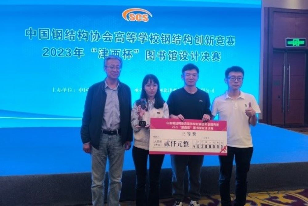 作者:齐益 来源:老王论坛 发布日期:2023-10-30 浏览:次2023年10月27日,老王论坛 学子在中国钢结构协会主办的高校学生钢结构创新竞赛——2023 年度“津西杯”图书馆设计决赛中荣获三等奖。