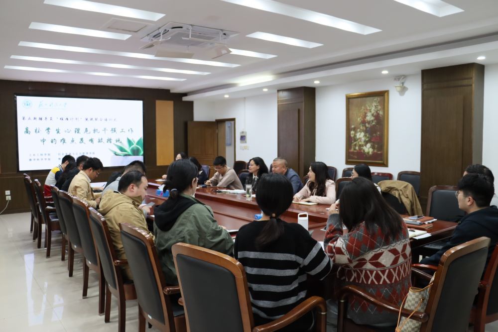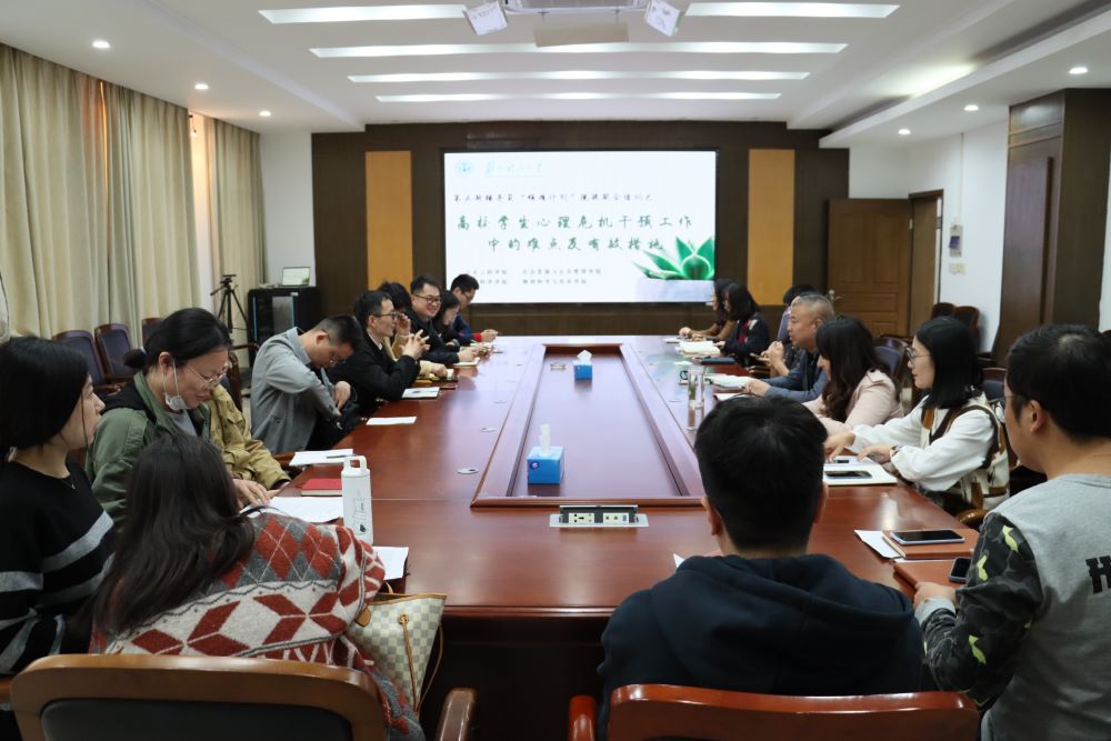 作者:王烽圣 图片作者:张奇 发布日期:2023-11-13 浏览:次为进一步加强辅导员队伍建设,提升辅导员队伍心理育人水平和危机干预能力,更好服务学生成长成才,第五期辅导员“领雁计划”院级联合培训以“高校学生心理危机干预工作中的难点及有效措施”为主题,于11月9日下午在老王论坛 北楼会议室举行,老王论坛 、社会发展与公共管理老王论坛 、数学科学老王论坛 及物理科学与技术老王论坛 全体学工人员参加,活动由老王论坛 党委副书记兼副院长刘建峰主持。