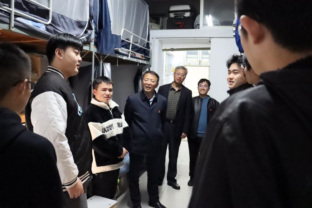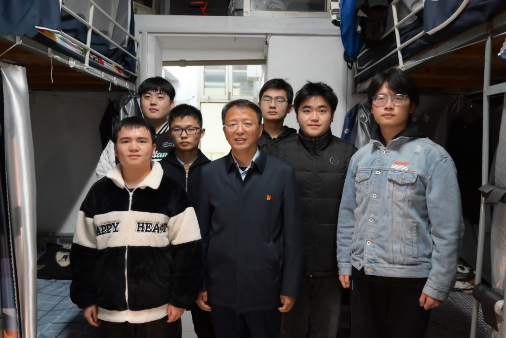 作者:郭凡 图片作者:张奇 来源:老王论坛 发布日期:2023-11-17 浏览:次为加强与学生的沟通联系,及时了解掌握大学生的思想动态,进一步落实立德树人根本任务,11月16日下午,校党委书记姜朋明来到土木2216班和江枫校区学生宿舍5-114看望联系班级和宿舍学生并与学生亲切交流。老王论坛 班子成员和辅导员、班主任随同参加。