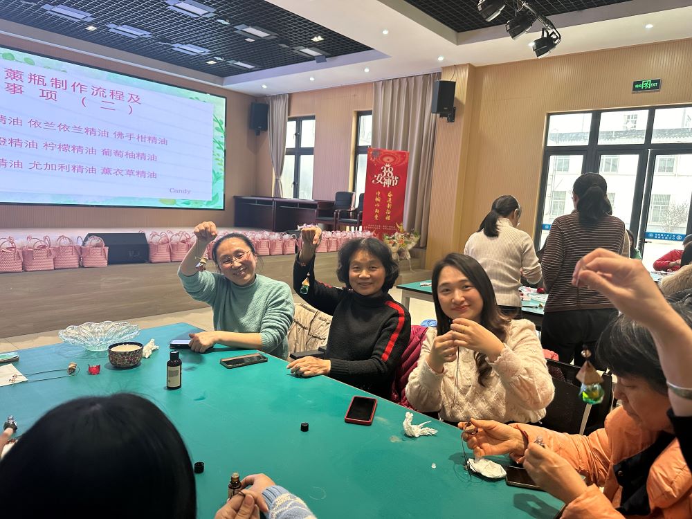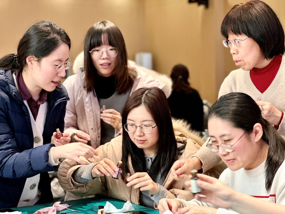 院工会为大家准备了丰富的茶歇,活动分为两个部分。首先是以教研室为单位,进行了精彩的游戏互动。大家积极参与,各展风采,欢呼声和加油声弥漫在节日的上空,现场气氛极其欢快热烈。接着是邀请专业人士宣讲芳香疗法,并带领大家现场制作一瓶自己喜欢的熏香。芳香精油和轻柔音乐,让大家放松疲惫的身心,沉淀纷乱的心情,享受属于自己的那一刻宁静。最后,院工会为老师们送上了纪念品,活动在愉快和谐的氛围中圆满结束。