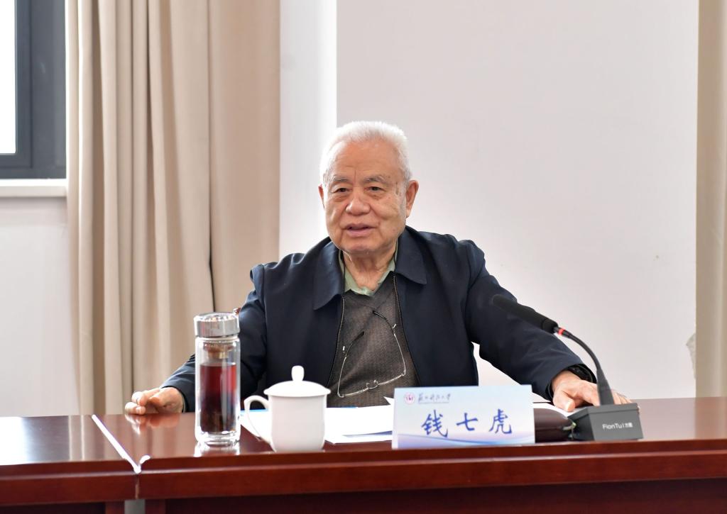 钱七虎院士听取了苏州国动防护研究院建设规划、学校土木工程学科发展和“钱七虎卓越班”建设等情况汇报,并与学生代表就学业、就业、职业规划等问题进行了互动交流。他指出,人防建设是“国之大者”,是国家长期战略。希望苏州国动防护研究院以国家发展和改革委员会防护供应技术中心分中心为建设目标,积极申报科技部相关基金项目,聚焦无人机等低成本、高效能领域加强建设,对国家人防领域形成有效补充。钱院士强调,中国迈向高质量发展的宏伟蓝图,诸如大国水网与铁路网的构建等超级工程项目,均与土木工程学科紧密相连,形成了不可分割的纽带。同时,城市建设逐步向城市更新转型,不仅凸显了土木工程学科的重要性,还催生了其与人工智能等前沿学科的深度交叉与融合,共同推动着科技进步与社会发展的双重飞跃。希望土木工程专业的学生以伟人们为榜样,勤奋学习,将个人理想志向与国家前途命运相结合,加强团队协作,提升综合素质,矢志报效祖国。