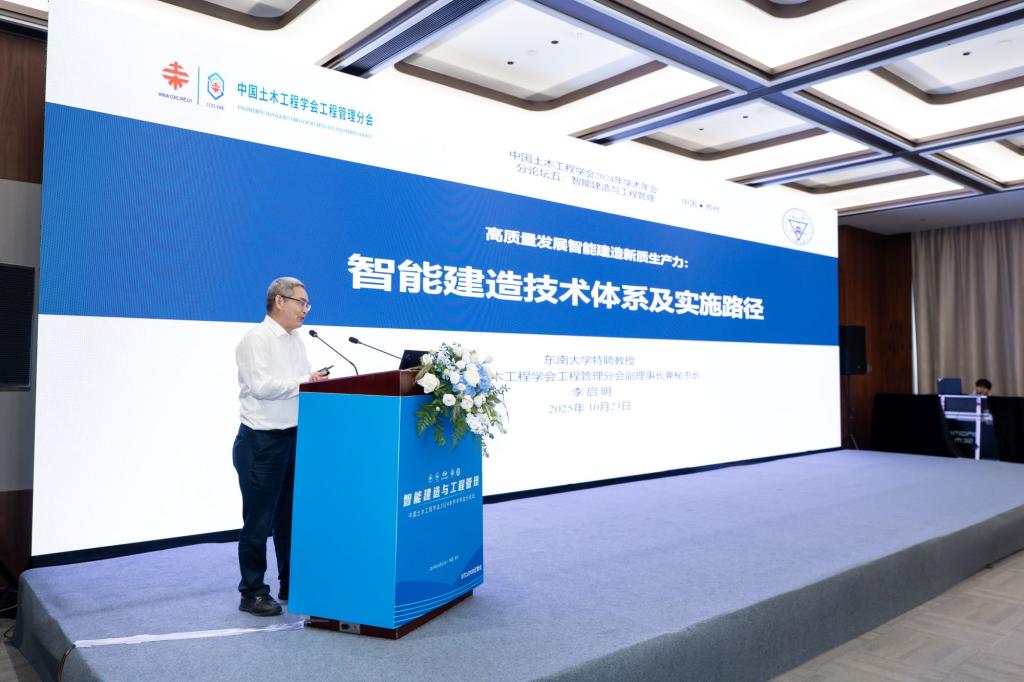 第5分论坛“智能建造与工程管理”由中国土木工程学会工程管理委员会主办,我校等单位承办。特邀4位知名学者和行业专家围绕工程数据要素、建筑行业数据资产打造、数据交易场景等议题进行了深入讨论,为智能建造行业的未来发展提供了思路和建议。论坛不仅促进了智能建造领域的学术交流与合作,为行业的技术进步和创新发展注入了新活力,而且为学校推动智能建造学科的发展指明了新的方向。