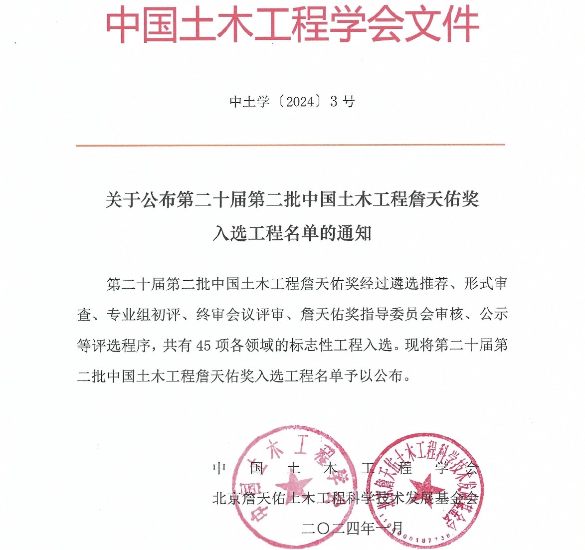 作者:姚江峰 张尚 王烽圣 图片作者:姚江峰 张尚 王烽圣 来源:老王论坛 发布日期:2024-10-25 浏览:次10月22日至23日,中国土木工程学会2024年学术年会、第二十届中国土木工程詹天佑奖颁奖大会暨《中国大百科全书(第三版)·土木工程》首发仪式在苏州举行。会议期间,由我校唐柏鉴教授团队主要参与完成的嘉兴市文化艺术中心项目荣获第二十届中国土木工程詹天佑奖。我校还联合承办了第5和第11分论坛。