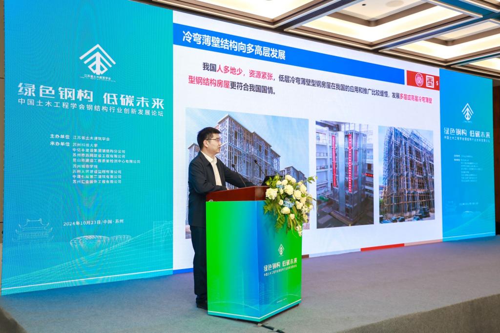 第11分论坛、“绿色钢构 低碳未来”的2024年中国土木工程学会钢结构行业创新发展论坛由江苏省土木建筑学会主办,我校等8家单位共同承办。我校常委、副校长崔雪丽,江苏省土木建筑学会钢结构专委会主任委员唐柏鉴,钢结构领域知名专家和学者、企业负责人、钢结构专委会委员、高校师生共有120余人出席会议。与参会代表深入探讨钢结构行业发展的新趋势和新挑战,以科技创新、资源整合和信息共享为载体,交流近年来取得的新进展,共同推动行业向高效化、绿色化、智能化发展。