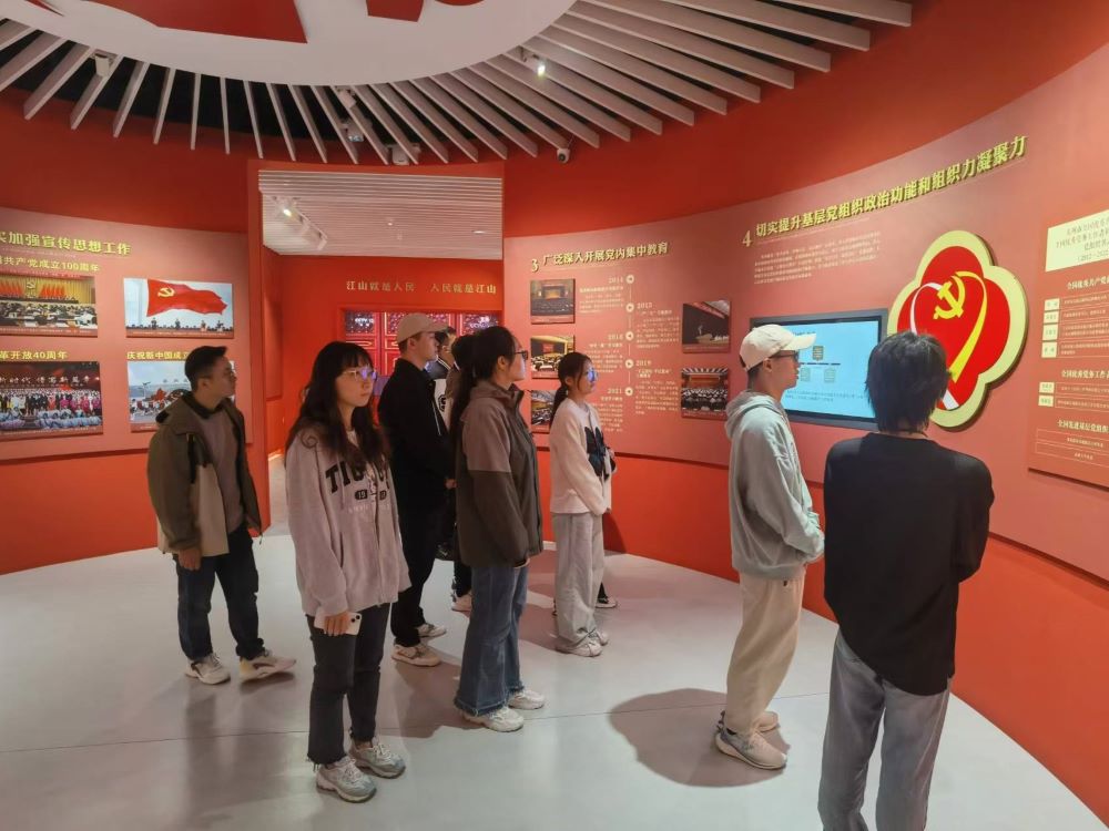 在讲解员的带领下,同学们参观了《夺取新民主主义革命伟大胜利》展厅,借助历史照片、文字和革命文物等,同学们系统了解了党领导苏州人民浴血奋战、百折不挠的光辉历史。在“习近平新时代中国特色社会主义思想指引下的苏州实践”主题展,通过文字以及300余张图片、50余部视频短片、150余件各类实物,同学们深刻感受到苏州持续深入学习贯彻习近平新时代中国特色社会主义思想的具体实践和发展成果。