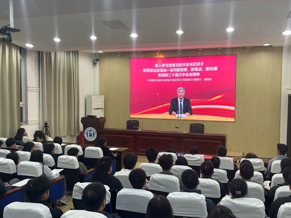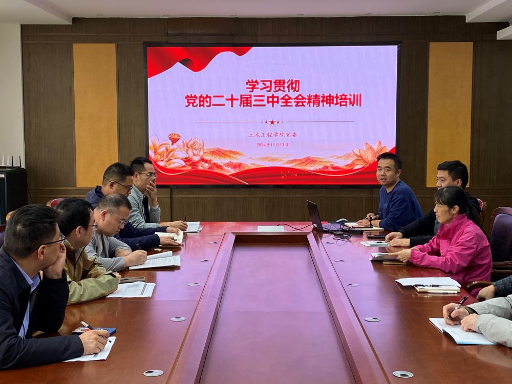 培训围绕“深入学习贯彻习近平总书记关于全面深化改革的一系列新思想、新观点、新论断和党的二十届三中全会精神”、“发挥经济体制改革牵引作用,全面推进各领域改革”、“加强党对进一步全面深化改革的领导”三门课程展开。11月13日,全院科级及以下干部在土木北楼二楼会议室集中学习,与会人员立足自身实际,结合进一步深化改革的新时代背景,围绕推动实现工作改革创新的更高价值取向目标,积极谈认识、谈体会、谈打算、谈落实。