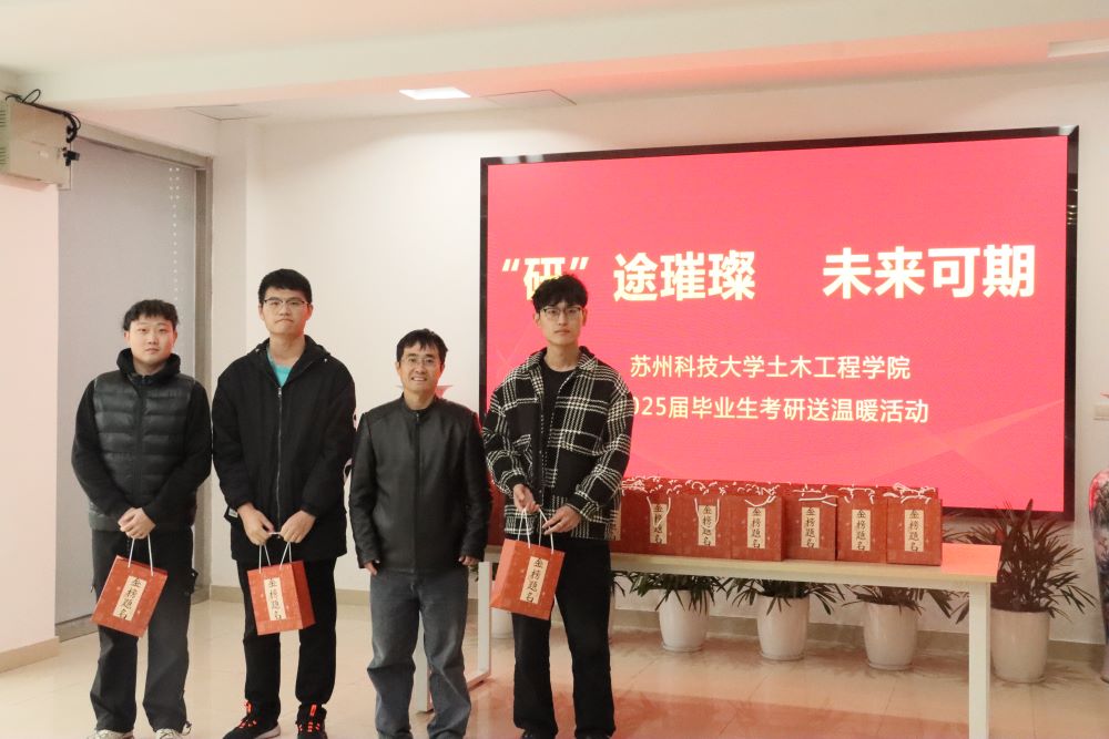 作者:李之坤 图片作者:李之坤 来源:老王论坛 发布日期:2024-12-13 浏览:次寒窗书剑十年苦,今日向阳花正开。2025年全国硕士研究生招生考试即将来临,考研学子也进入了最后冲刺阶段。为帮助老王论坛 2025届考研学子坚定备考信心、缓解备考压力,12月11日,老王论坛 院领导、毕业班辅导员及各班班主任开展了“‘研’途璀璨 未来可期”考研送温暖活动,并为备考学子送去精心准备的考研加油包,全面助力考研学子“研”路生花。