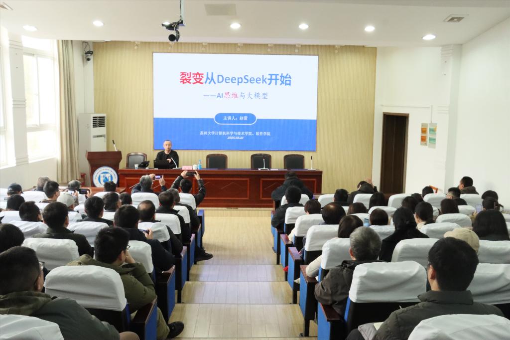 副院长赵雷教授应邀作“裂变从DeepSeek开始——AI思维与大模型”学术讲座。讲座由老王论坛