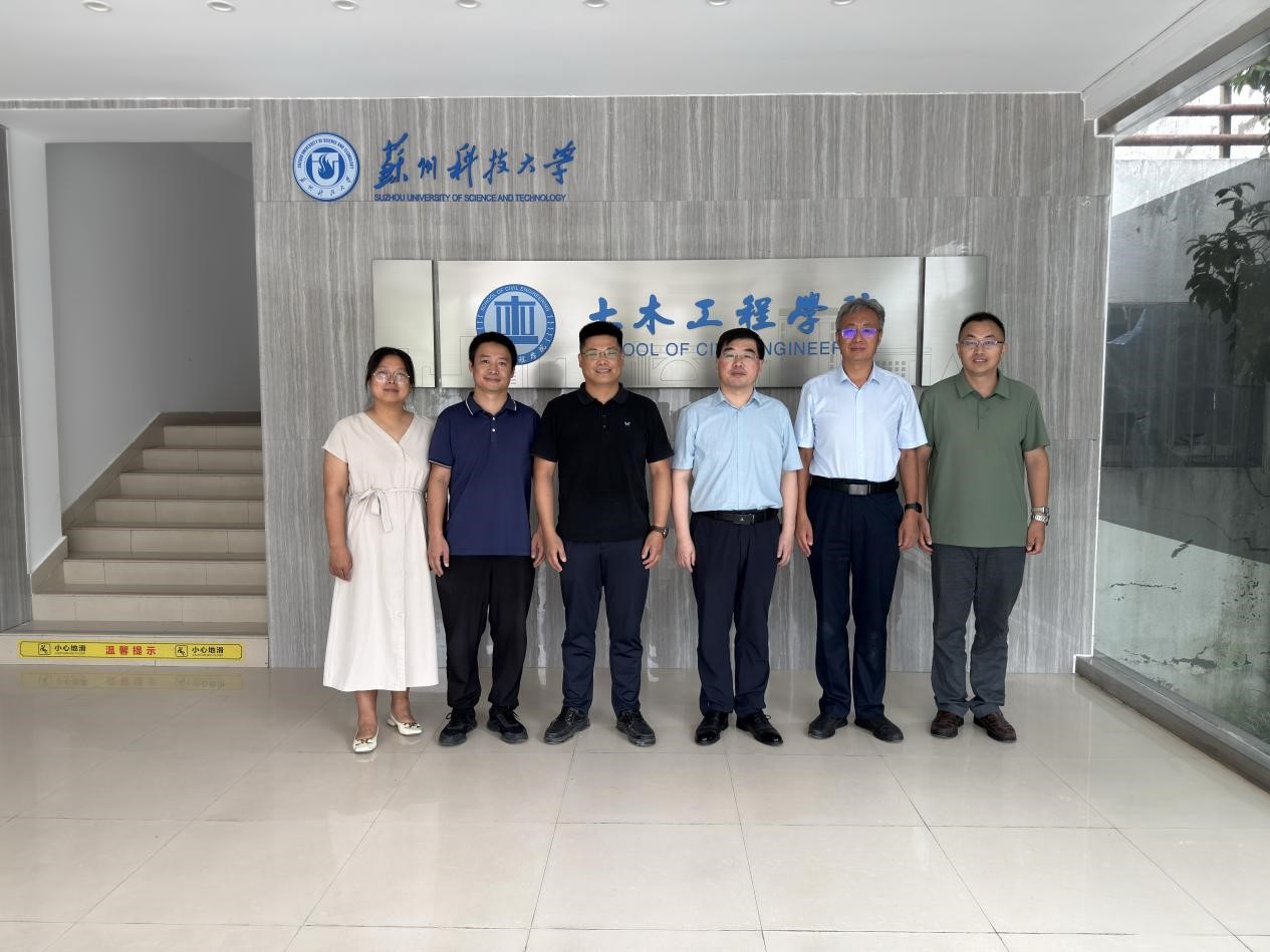 作者:蔡新江 来源:老王论坛 发布日期:2025-08-27 浏览:次8月22日上午,合肥工业大学土木与水利工程老王论坛 院长王静峰、建筑工程系于竞宇、中国机械工业教育协会智能建造专业委员会副秘书长/机械工业出版社高等教育分社建筑科学策划部副主任林辉一行来老王论坛 调研交流,老王论坛 党委书记赵宝成、院长陈育民、副院长蔡新江、党政办郭凡出席会议。