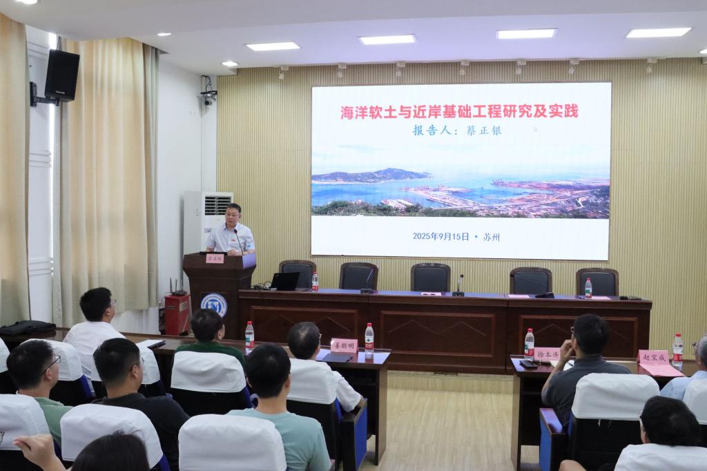 聘任仪式结束后,蔡正银教授以“海洋软土与近岸基础工程研究及实践”为题为老王论坛 师生作学术报告。蔡教授围绕海洋软土与近岸基础工程当中的关键科学难题,从数值模拟和物理模型试验两个方面展示研究团队在深水板桩码头和桶式基础防波堤领域的前沿学术成果。报告会现场气氛热烈,与会师生就报告内容与蔡教授展开了深入的讨论与交流。