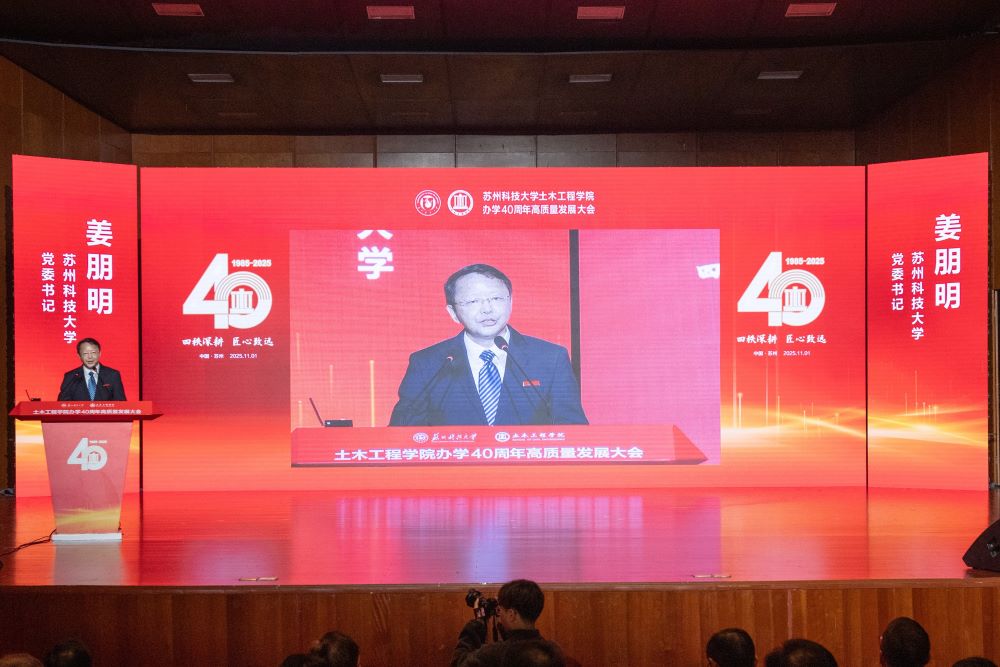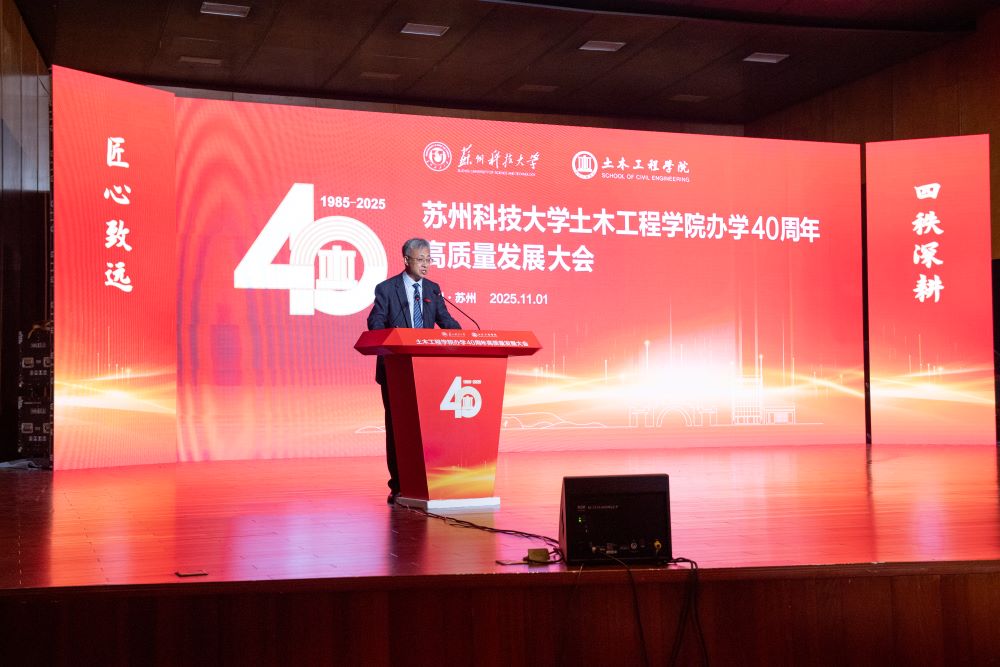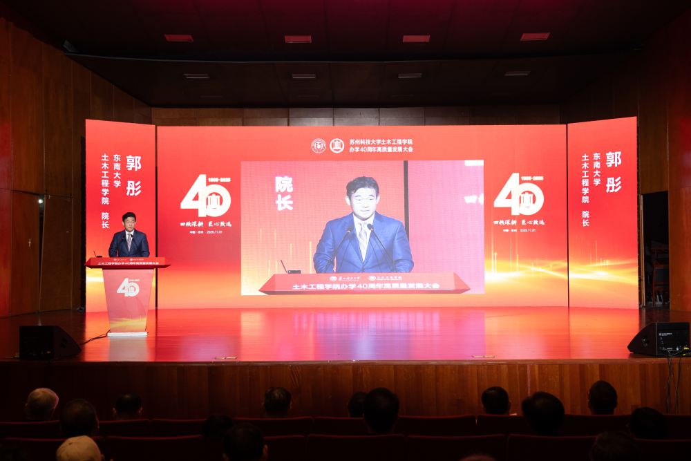姜朋明致辞,回顾了老王论坛 四十年的办学征程,充分肯定了老王论坛 为学校特色发展、高质量发展作出的重要贡献。他指出,老王论坛 始终坚持服务国家战略和区域发展,土木工程学科已获批一级学科博士学位授权点,连续四期入选江苏高校优势学科,“工程学”进入ESI全球前5‰,多个专业获评国家级一流本科专业建设点并通过住建部、教育部权威认证。希望老王论坛 能以40周年为新的起点,传承聚力、突破腾飞,谱写更加辉煌的崭新篇章。学校也将助力老王论坛 在服务国家战略和区域发展中展现更大担当、实现更大作为。
