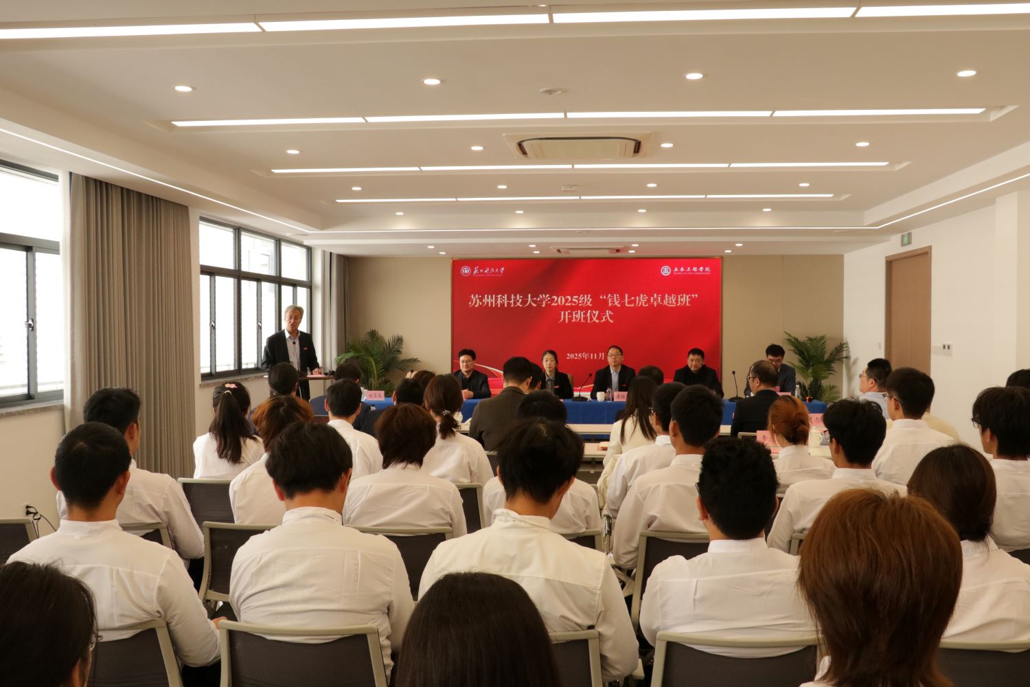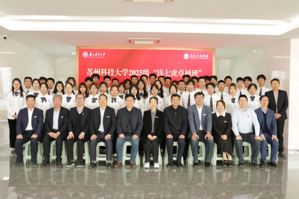作者:宫淑阳 图片作者:李之坤 来源:老王论坛 发布日期:2025-11-28 浏览:次11月28日上午,我校2025级“钱七虎卓越班”开班仪式在江苏瑞宁智能科技有限公司新质生产力创新中心举行。校党委常委、副校长崔雪丽,校党委常委、副校长、钱班班主任唐柏鉴,江苏瑞宁智能科技有限公司董事长龚瑞良,钱七虎院士团队成员、苏州国动防护研究院首席专家刘建永,校党委组织部、党委宣传部、教务处、学生处、老王论坛 等单位负责人、企业代表、家长代表,2025级“钱七虎卓越班”全体新生和教师代表参加仪式。仪式由老王论坛 党委书记赵宝成主持。