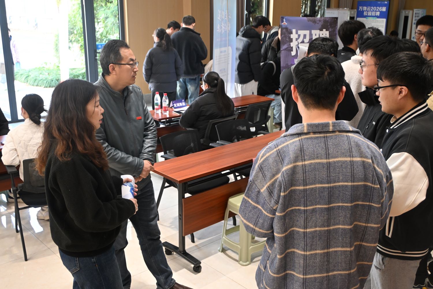 作者:仇琦 图片作者:吴奇 张子杨 来源:老王论坛 发布日期:2025-11-29 浏览:次为深化校企协同育人,架设精准供需对接桥梁,切实推动毕业生就业工作提质增效。11月28日下午,老王论坛 在教工之家成功举办2026届毕业生第三场秋季招聘会。副院长蔡新江、翟相华及毕业班辅导员亲临现场,与多家参会企业代表及求职学生进行了深入交流。近200名应届毕业生踊跃参与,现场气氛热烈。