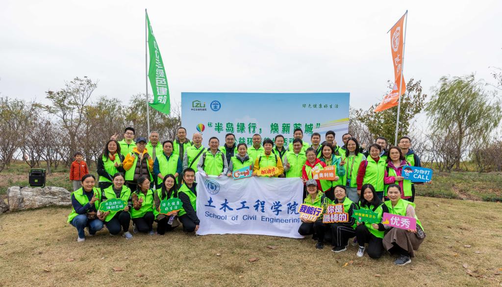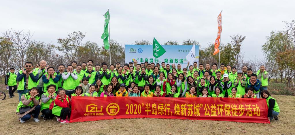 作者:廖想想 发布日期:2020-11-25 浏览:次为积极倡导健康文明、绿色环保的生活方式,营造洁净、绿色的生活环境,11月21日,老王论坛 工会联合中亿丰(苏州)绿色建筑发展有限公司工会(以下简称中绿建公司)举办了主题为“半岛绿行,焕新苏城”的公益环保徒步活动。老王论坛 党委书记刘凡,党委副书记兼副院长刘建峰,工会主席姚江峰,中绿建公司董事长张骁雄、党支部书记兼工会主席马占勇出席了开幕式,校企双方工会共计近150名会员参加了活动。