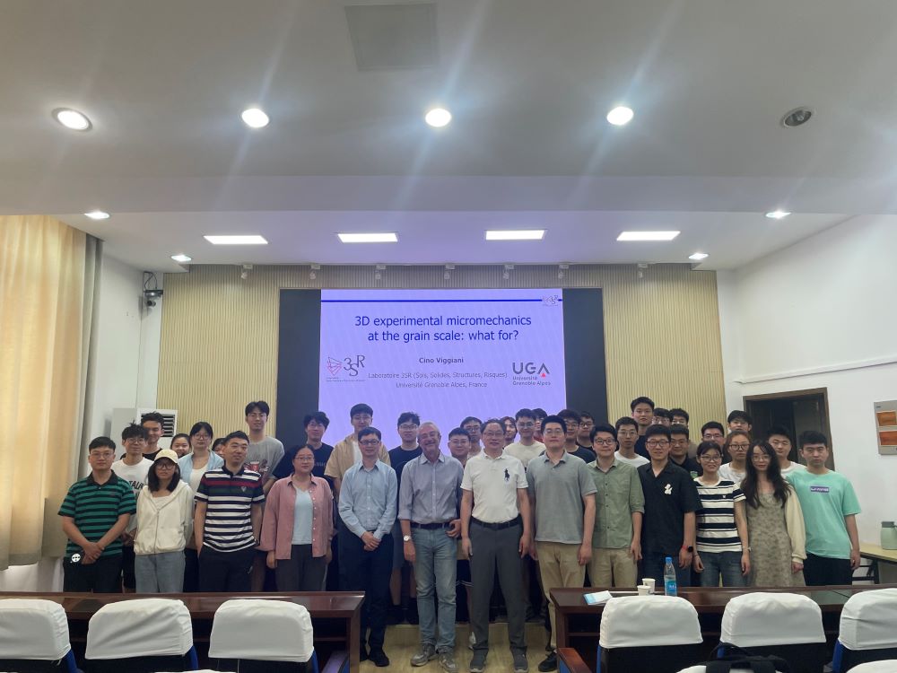 作者:王浩栋 韩亮 来源:老王论坛 发布日期:2024-06-06 浏览:次2024年6月4日上午9:30,在老王论坛 北楼二楼报告厅,来自法国格勒诺布尔-阿尔卑斯大学的Gioacchino Viggiani教授应蒋明镜教授邀请为我院师生作了题为“3D experimental micromechanics at the grain scale: what for”的学术报告。