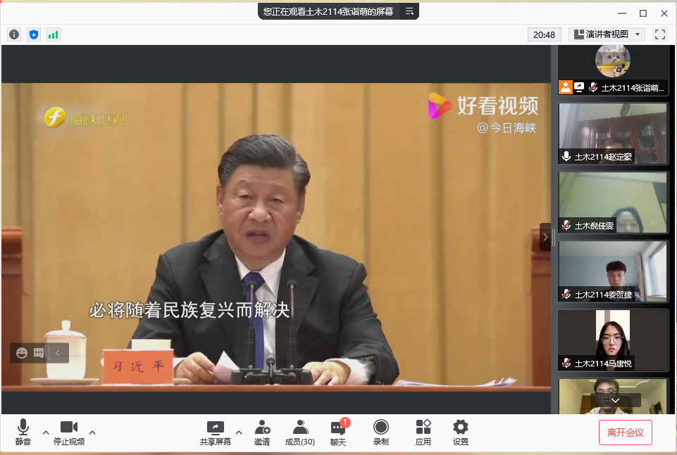 团委的指导下,各班由团支书组织线上班会,带领全体同学观看此次讲话,学习感悟习近平总书记的勉励嘱托。