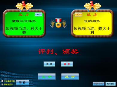 此次辩论赛参与同学由两个辩题,四个小组,十二位同学组成。主持人由徐晶晶同学担任,评委由研会部门部分负责人参加。两场辩论的论题分别为“熬夜给我们带来了快乐还是危害?”和“短视频是利大于弊,还是弊大于利?”。比赛分为开篇立论、攻辩阶段、自由辩论和总结陈词四个部分组成,虽然是线上开展辩论赛,但是双方辩手激烈交锋,妙语连珠,每场辩论赛都是精彩不断。在每场辩论结束,主持人对每场辩论进行了总结,也对每位辩手的精彩表现给予了认可,使辩手们信心十足。