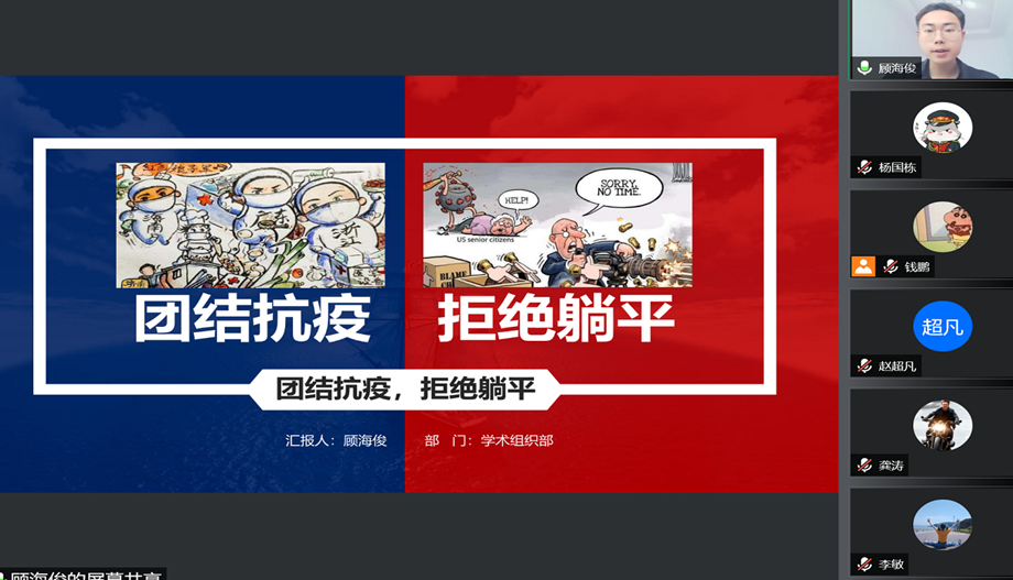 此次主题演讲活动由马宏鑫同学策划,钱鹏同学担任主持,葛思源负责撰写通知。在本次活动中同学们激烈陈词,妙语连珠,探讨了疫情期间个人的作为,赞美了抗疫前线工作人员们的英勇事迹,培养了当代学生的家国情怀。