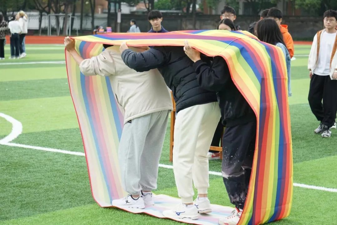 战车履带:同学们给了彩虹履带以生命,拨动履带前行,各小组接力而行,用时最短者获胜。