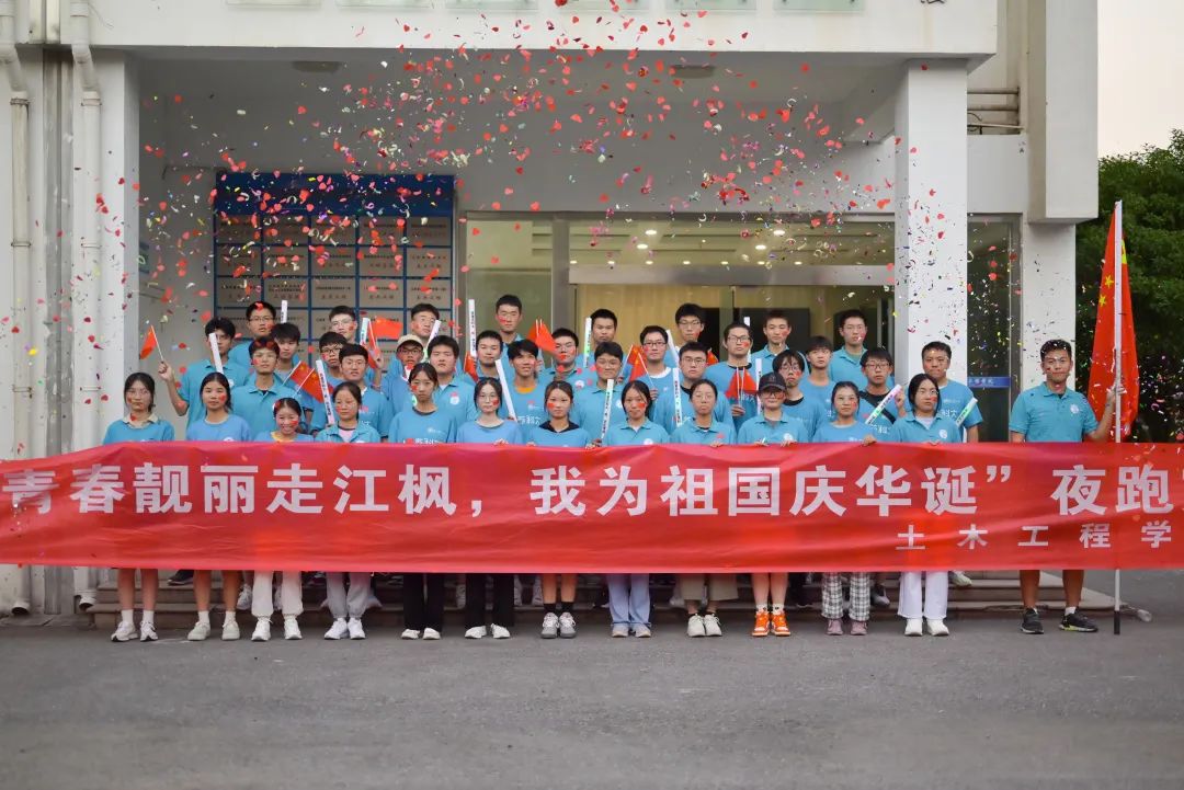 国庆假期第二天当然也不能错过。我院组织了“青春靓丽走江枫,我为祖国庆华诞”主题夜跑活动。