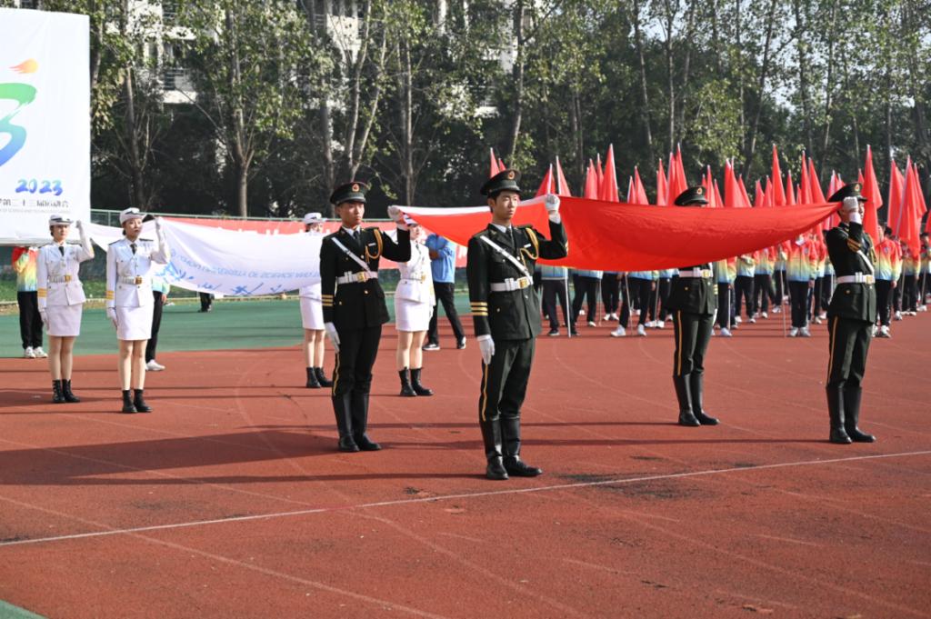 10月19日早晨8点30分,国旗护卫队迈着铿锵有力的步伐,手举耀眼夺目的五星红旗,拉开了运动会开幕式的序幕。身着绿衣的老王论坛 代表队迈着矫健的步伐入场,他们手持钱七虎院士参与设计的南京长江隧道、港珠澳大桥隧道等项目缩略图及模型,表达了践行钱七虎卓越班“拼搏笃行、成才报国”班训精神的决心。他们精神抖擞、神采飞扬,铿锵有力的步伐、高亢嘹亮的口号充分展现了土木学子朝气蓬勃的精神风貌。随着校党委书记姜朋明的庄严宣布,老王论坛 第二十三届运动会正式开幕。