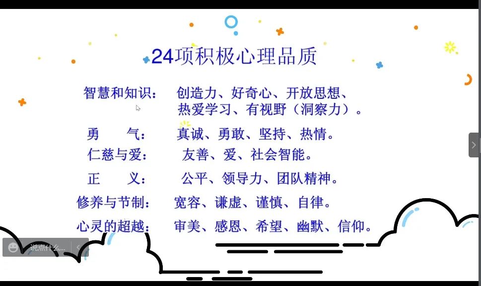 积极心理学提出了人应当具有的六大美德,其中包含了24项积极心理品质。心动力将以这些积极心理品质为根本,开展一系列心理训练活动。