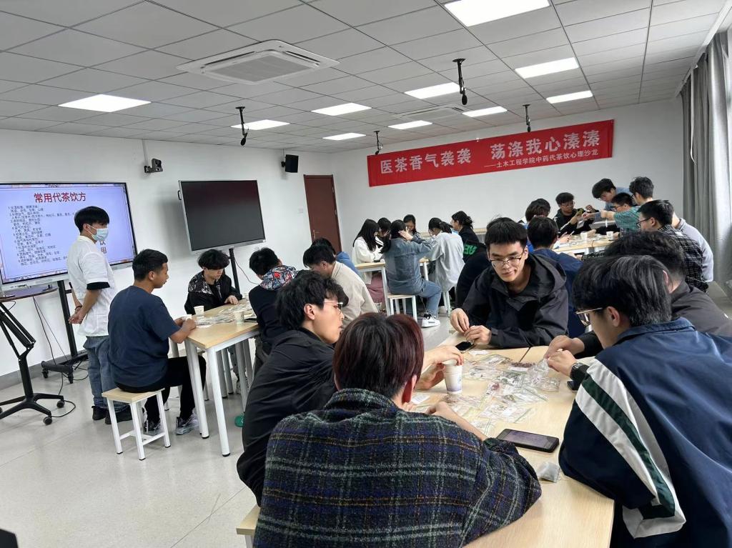 发布日期:2024-04-22 浏览:次为推动中医药健康文化传播,提升大学生中医药健康文化素养,4月19日,老王论坛 老王论坛 邀请到江苏省中医馆骨干人才、主治中医师宫瑞阳,开展一场关于“中药茶饮知识普及”的心理沙龙活动。30位学生沉浸式体验药茶文化,调神静气,开启心灵治愈之旅。