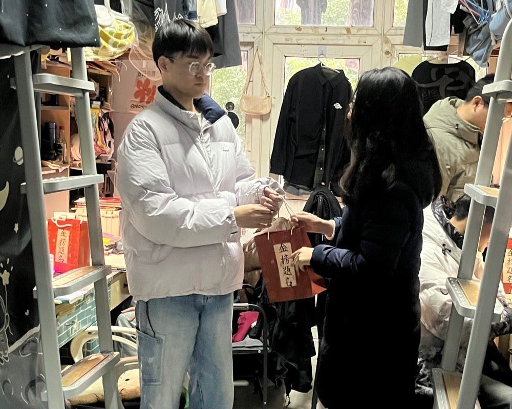 “天气寒冷,要注意保暖,有需要帮助的时候随时联系我。”在学生宿舍,老师们为考研学子带来了真挚的问候和深切的祝福,鼓励考研学子在冲刺的时刻保持好心态,叮嘱学子们注意考试事项、保持规律作息,以饱满的热情和坚定的决心迎接考试。愿考研学子们从老师们温馨的鼓励中汲取力量,顺遂无虞,金榜题名。