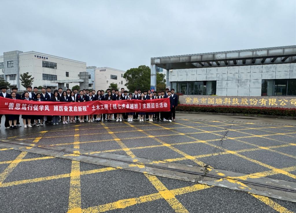 发布日期:2024-10-28 浏览:次为深化校企合作,积极推进学风建设,增强班级凝聚力,2024年10月26日,老王论坛 2024级“钱七虎卓越班”全体成员前往常熟市国瑞科技股份有限公司开展“善思笃行促学风,踔厉奋发启新程”主题团日活动。