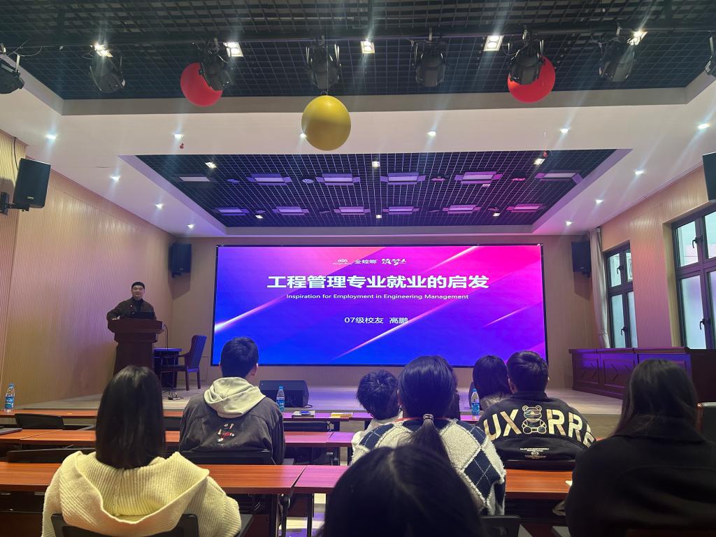 为了夯实工程管理专业大一新生的专业根基,使其全方位、深层次地洞悉工程管理专业的学科魅力与发展前景,同时,最大化地激发杰出校友的榜样力量,为在校大学生点亮前行的道路。2024124日下午,我院工程管理系举办校友学术讲座活动。2000级顾佩娟、2010级宋思原、2007级高鹏结合自己的求学经历与工作经验,与工程管理专业学生分享了自己对工程管理专业的理解,鼓励在校大学生努力学习、积极参加企业实习、尽早明确择业方向。